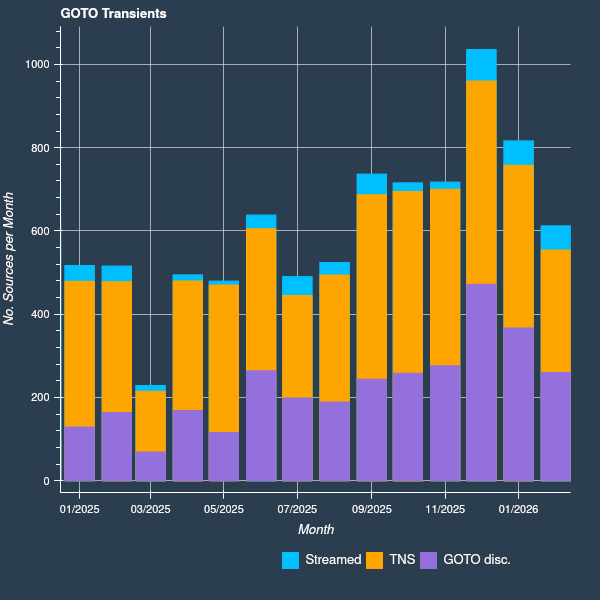 In 2025, GOTO had an outstanding year, detecting and reporting 6,703 transients (~18 per day), a rise of more than 60% compared to the previous year (~4,060). Of these, GOTO was the original discoverer of 2,557, another 60% increase on last years figure of 1,543 and an average of 7 per day. 48 of these…