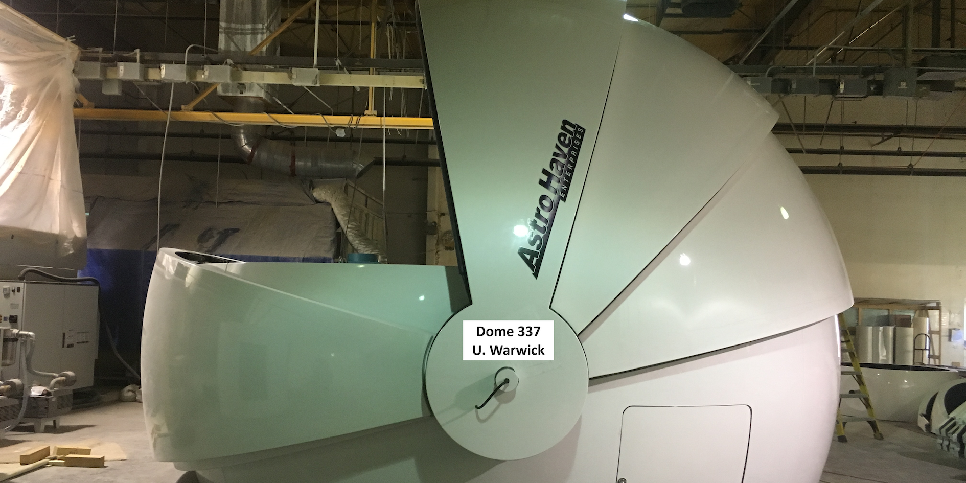 We are very excited to see the first of two domes constructed and ready to be shipped to the GOTO-S site at Siding Springs Observatory. The two Astrohaven 18 foot domes will each host eight 40cm telescopes. The second dome is currently under construction and is foreseen to be completed two months from now.